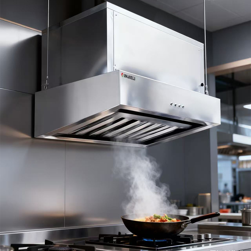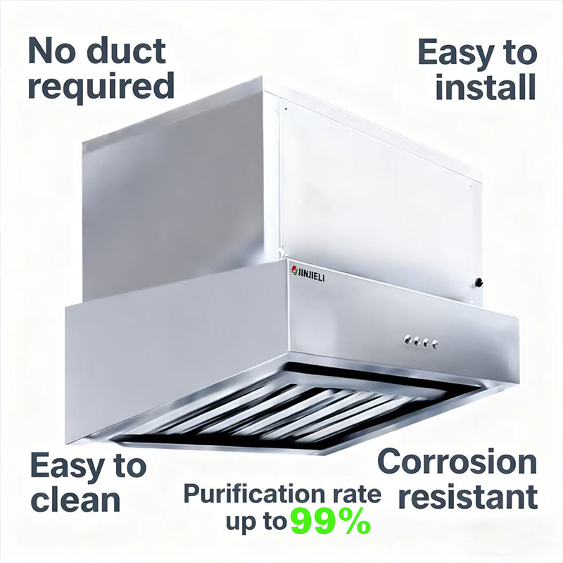 A ductless range hood works by sucking in grease, smoke, and odors, passing the air through a metal grease filter and a charcoal carbon filter to trap contaminants and neutralize smells, and then recirculating the cleaned air back into the kitchen.